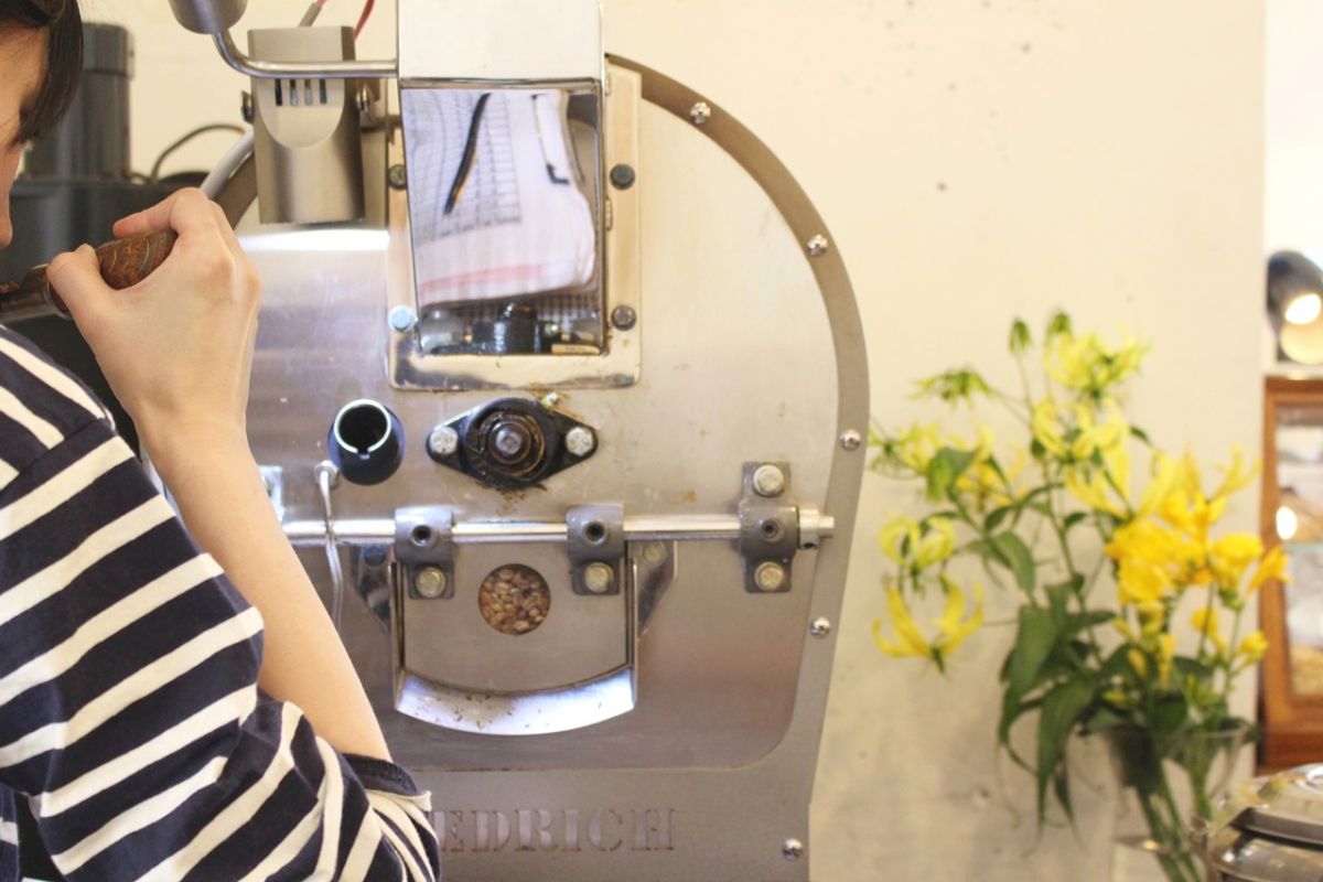 店内に置かれた大きなロースターで、コーヒー豆を自家焙煎しています。