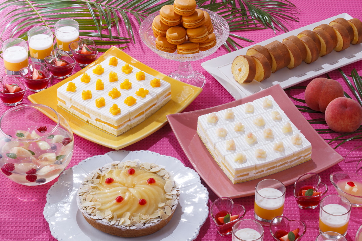 旬のマンゴースイーツは新登場のマンゴーショートケーキのほか、ふんわりとした口当たりのマンゴーロール、サクサク感も楽しめるマンゴータルト、果実味が豊かなマンゴーシャーベットなど!ほかにも定番のスーパーメロンショートケーキをはじめ、ピーチゼリーやフレンチトーストなどスイーツは全18種類。