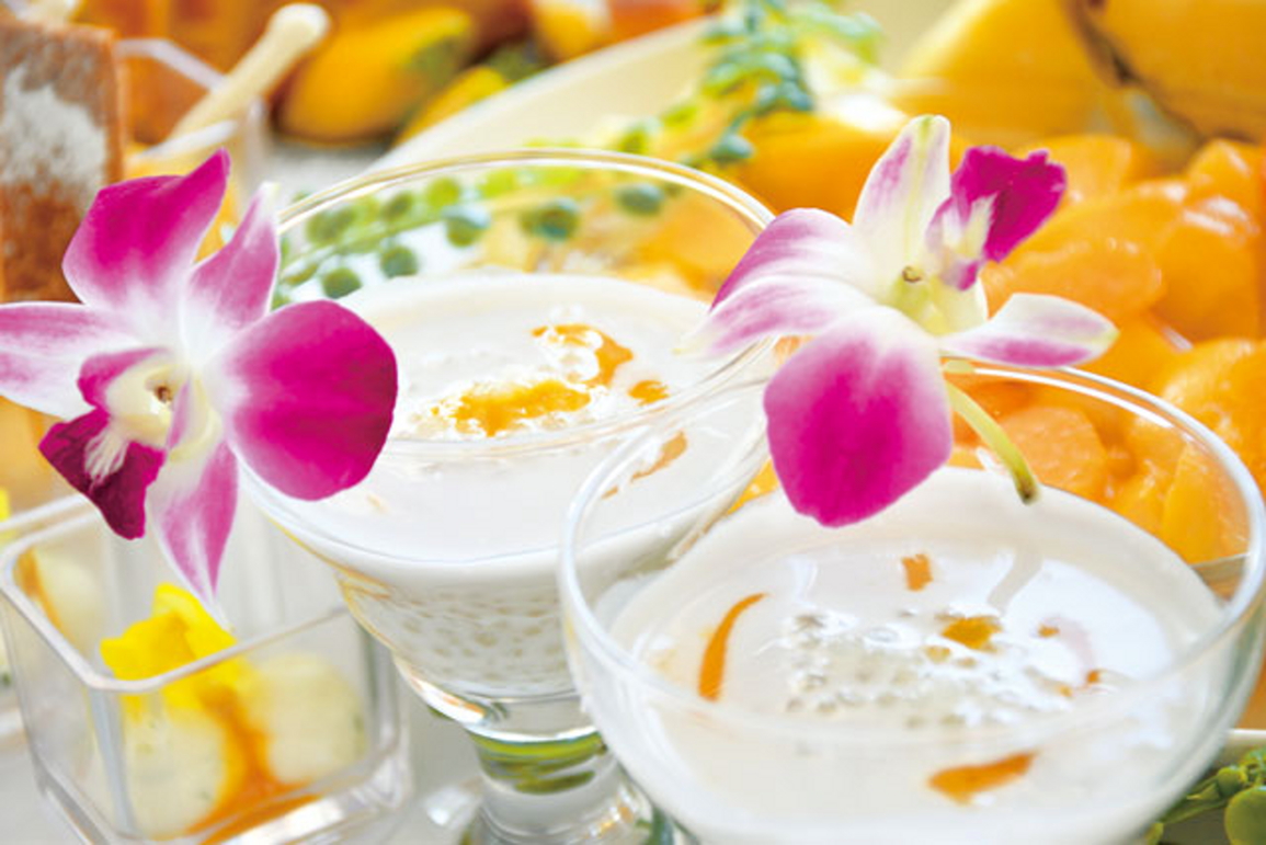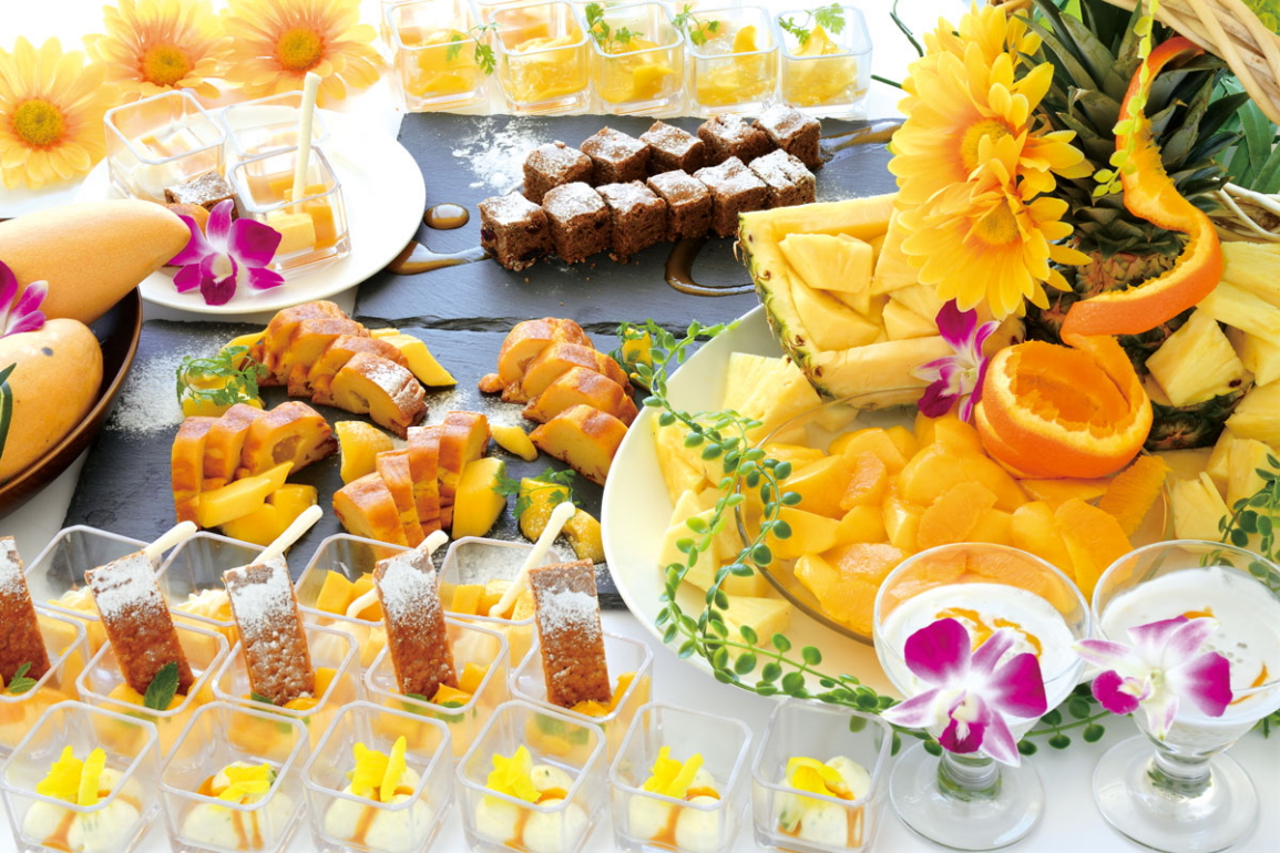 マンゴーのタルトやプリン、ゼリー、アイスはもちろん、フレッシュなマットマンゴーもどっさり!ジューシーでなめらかな口当たりの新鮮なマンゴーを食べて、夏気分を満喫しちゃいましょう。