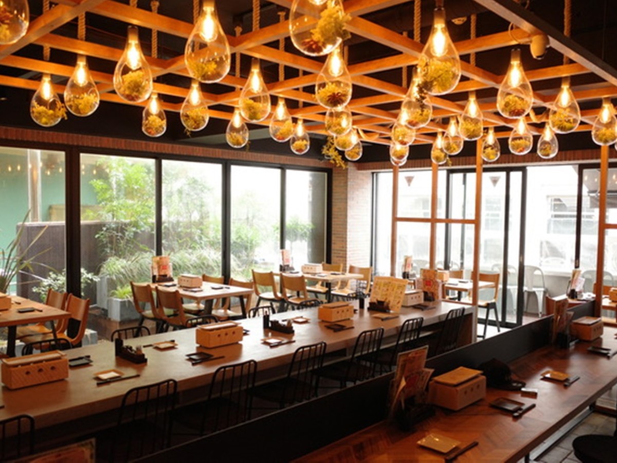 天井が高く、スタイリッシュな照明が店内を照らします。雰囲気は“バリ風のリゾート”をイメージしているのだとか。