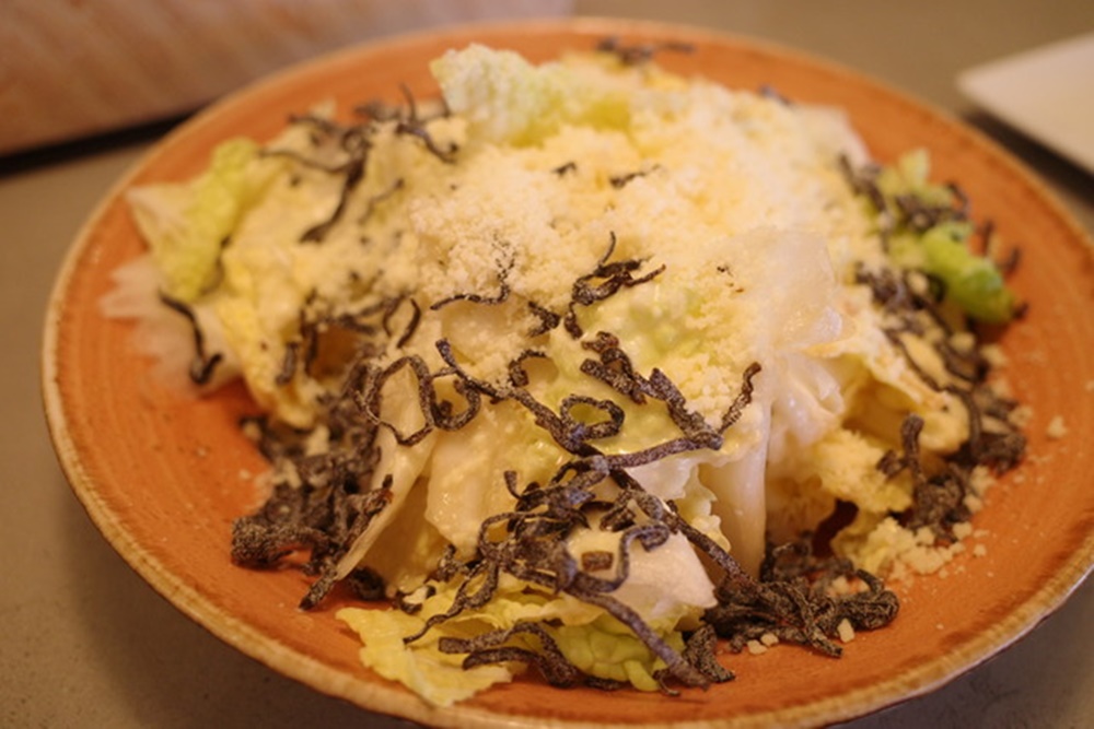 お酒に合うちょっとしたおつまみが充実しています。「白菜サラダ」(480円)は、塩昆布の塩味にチーズのコクがプラスされておいしい!