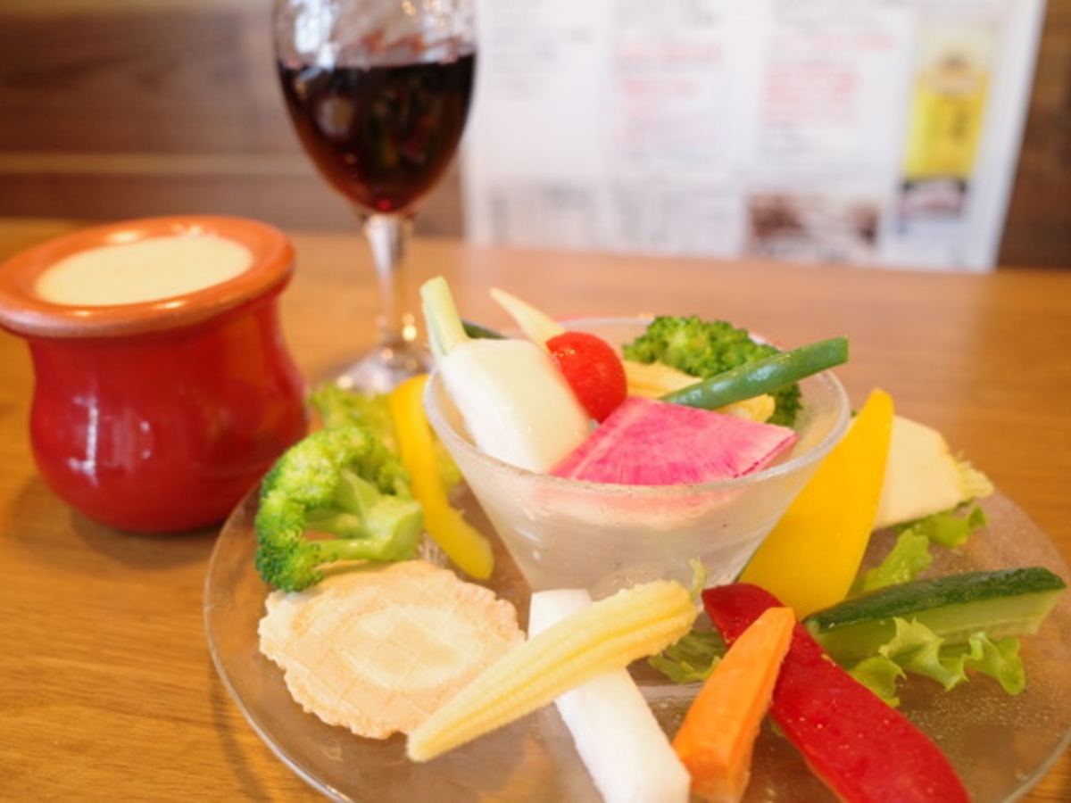 たっぷり野菜が食べられるバーニャカウダにも、和牛のエキスをたっぷり使ったクリームソースが使われています。ブロッコリーやカブ、トマトやパプリカなど新鮮な野菜を味わいましょう。