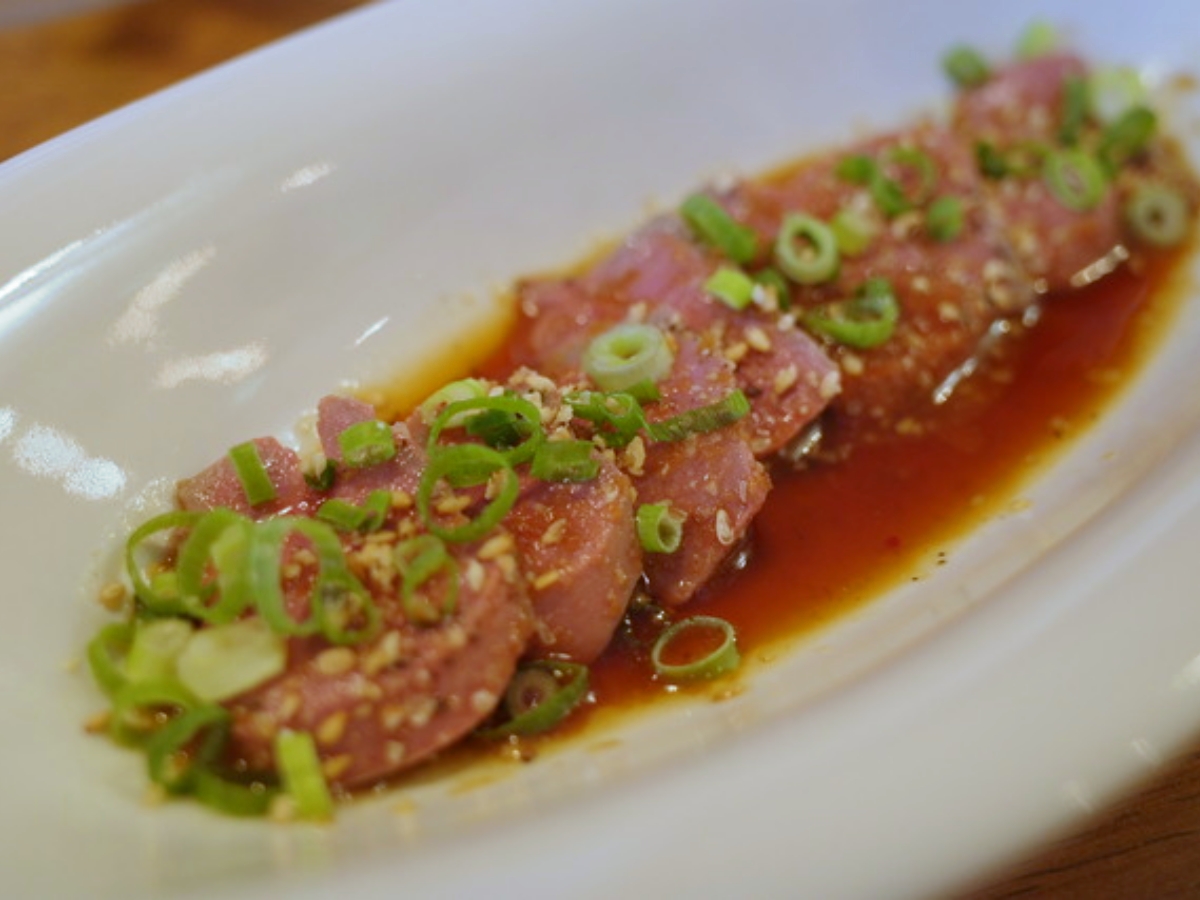 「神戸牛レバーの低温調理」(780円)。じっくりと低温で火を通して、まるで生のレバ刺しのよう。ワインにもぴったりのおつまみです。