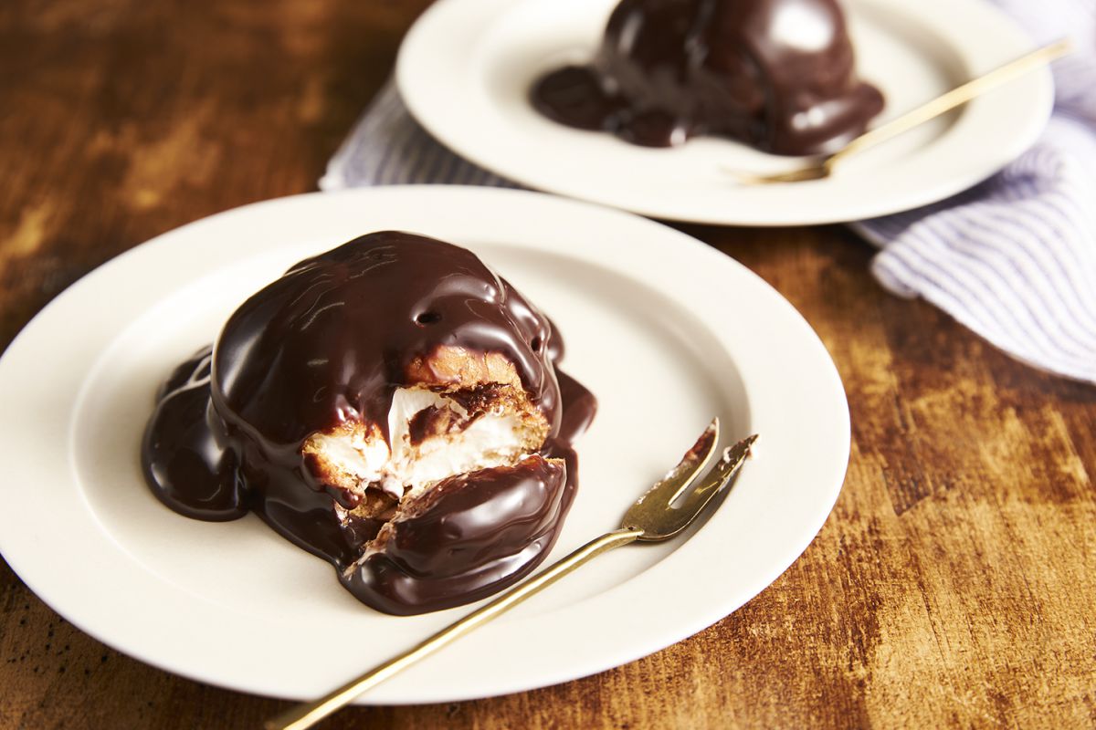 ここだけで楽しめる限定メニュー“ビニョラータ アル チョコラート“480円はぜひ食べておきたいイチオシ。シュー生地に生クリームを詰めた後に、ひとつひとつ丁寧にチョコレートで包み込んだプリンチ®オリジナルメニューです。チョコレートと生クリームの滑らかな口当たりがたまりません。