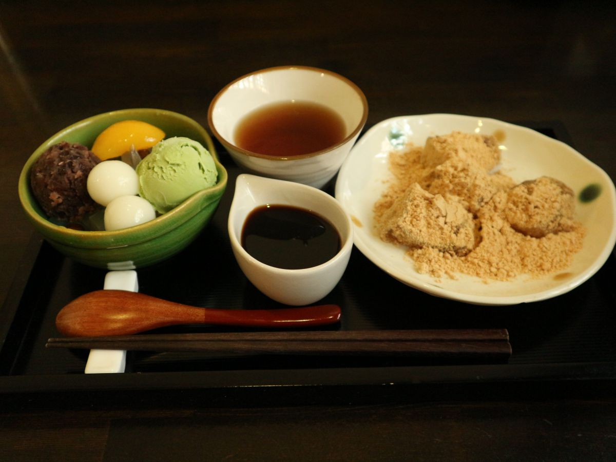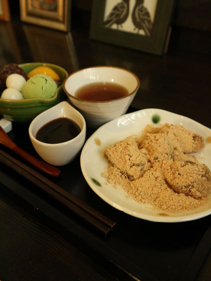 毎朝練り上げるわらびもちは、弾力を残した仕上がり。ぷるんと食感が心地よく、大きめにカットされているうえに、きなこもたっぷり!食べ応えがあります。