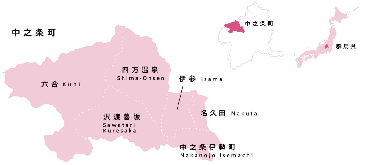展示会場は「中之条伊勢町(なかのじょういせまち)」「伊参(いさま)」「名久田(なくた)」「四万温泉(しまおんせん)」「沢渡暮坂(さわたりくれさか)」「六合(くに)」の6つのエリアに点在。なんと50会場で展示、パフォーマンス、イベントが開催されます。