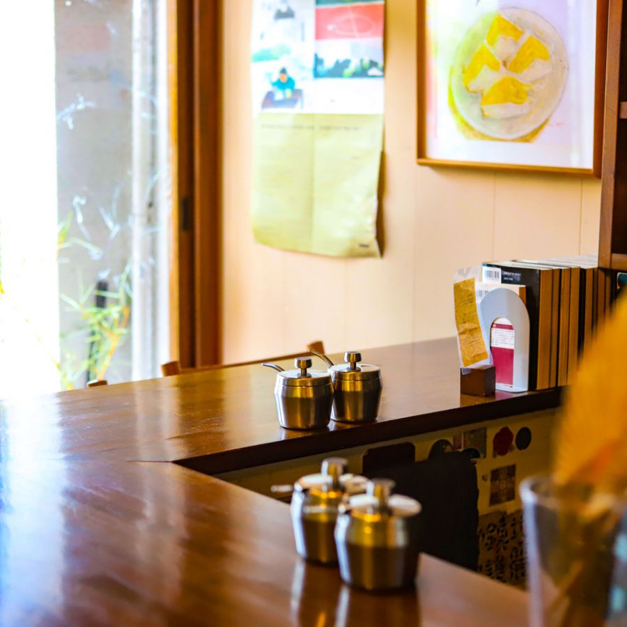 一階席はキッチンを囲うような形で設けられたカウンター席となっていて、店主さんとのゆるい会話を楽しみながら喫茶時間を過ごすことができます。