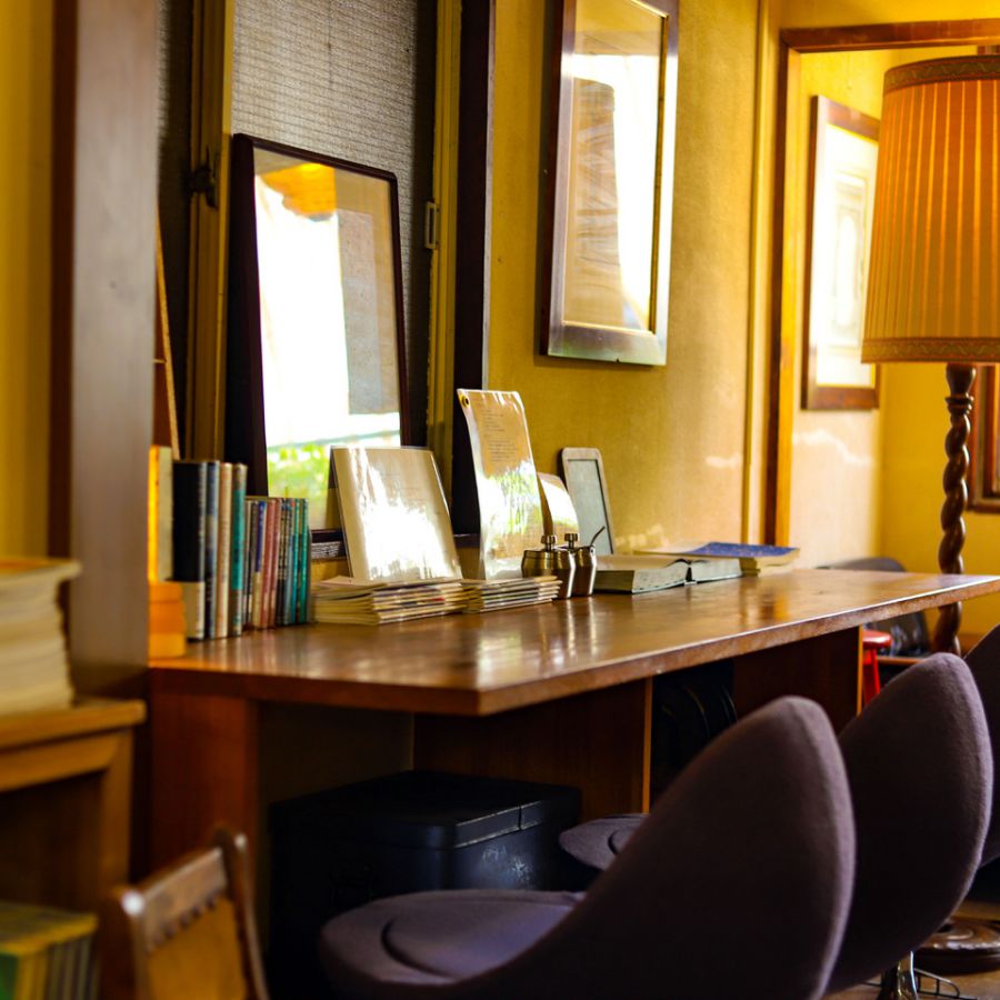 奥の階段を上がって二階席に向かうと、そこには窓から射す光によって生み出された陰影が醸すノスタルジックな世界が。