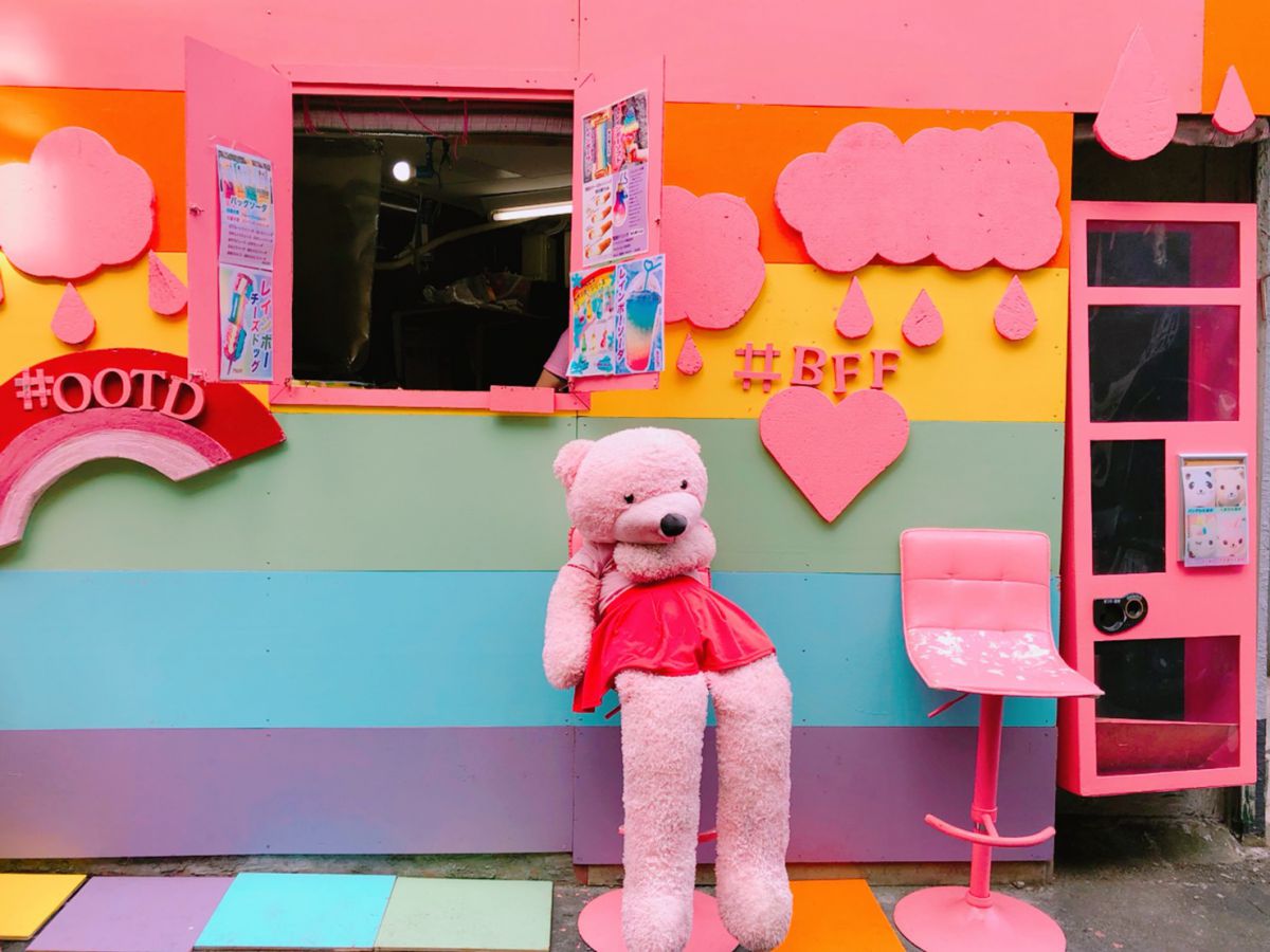 レインボースイーツブームの火付け役となったお店。フォトジェニック度MAXのレインボーサンドをはじめ、かわいすぎるテイクアウトメニューが揃います。ピンクのクマさんが目印で、店全体がまさにフォトスポット!