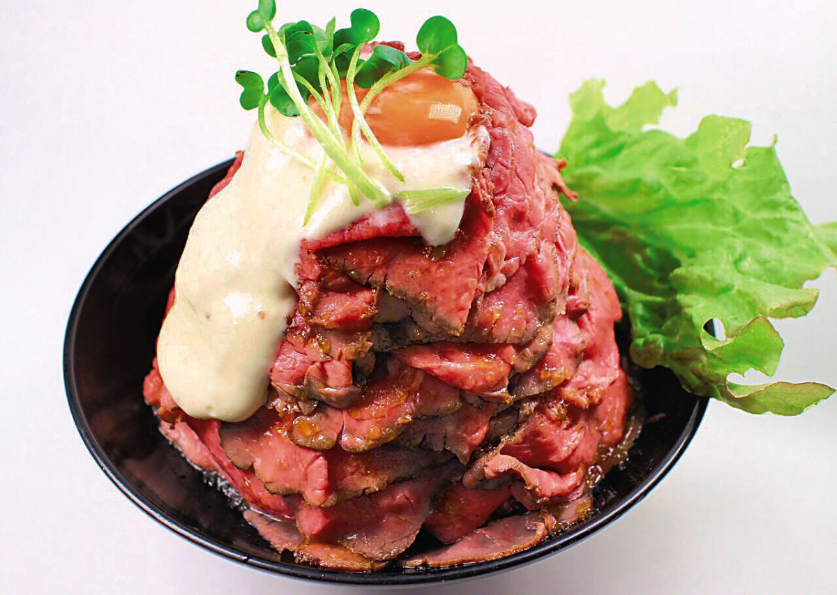 ローストビーフ丼(大)1150円。やわらかい赤身のもも肉を盛り付けています。大盛は約180gの肉がのります!