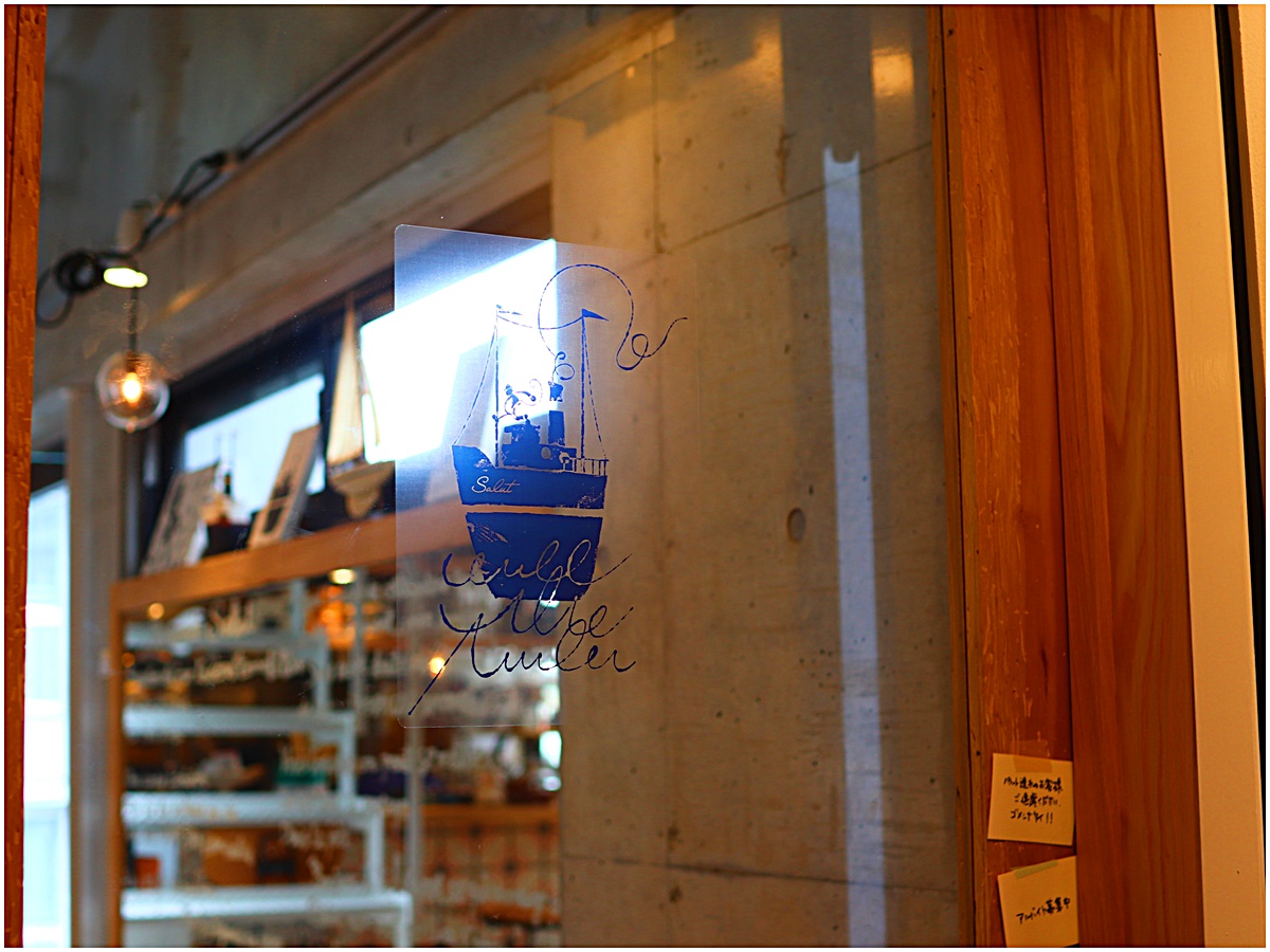 お店の入口には船のマーク。「船の司厨さんである、おサルのサリューが店長」というコンセプトなんだとか。