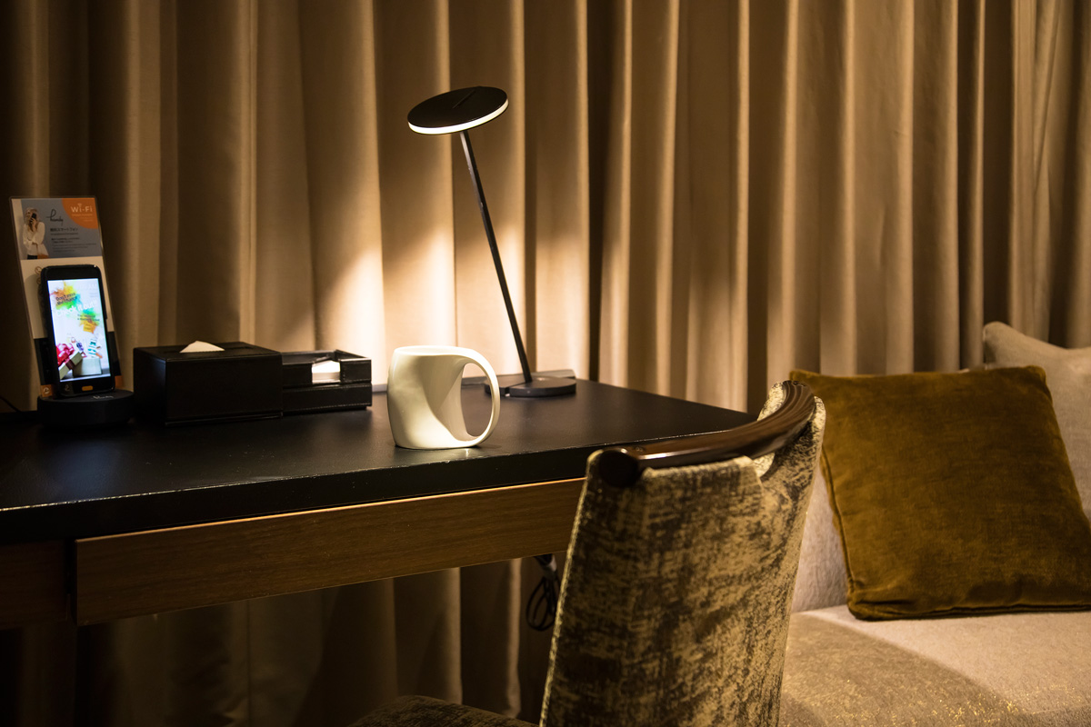 ライティングデスクが備わり、無料Wi-Fiが使えるのでビジネスで訪れる人にも便利。デスク上のスマホは、チェックインからアウトまでの間、自由に利用できる無料スマートフォン「handy」。電話もカメラ機能もアプリも使えて、ホテルの外へ持ち出してもOKです。