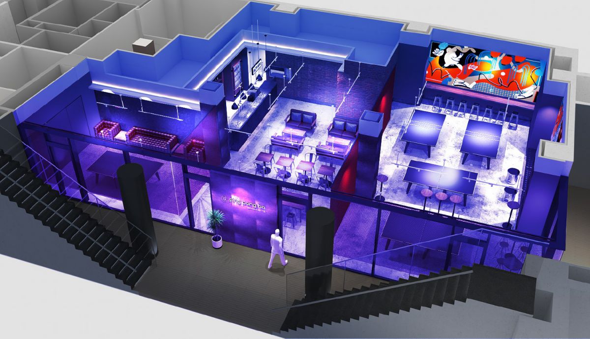 フロアは、「ガストロパブ」×「卓球」がテーマ。5台の卓球台とDJブースもあり、落ち着いた雰囲気の照明と心地よい音楽が包み込む空間で、パブの本場ロンドンで人気のビールや本格的な食事が味わえます。