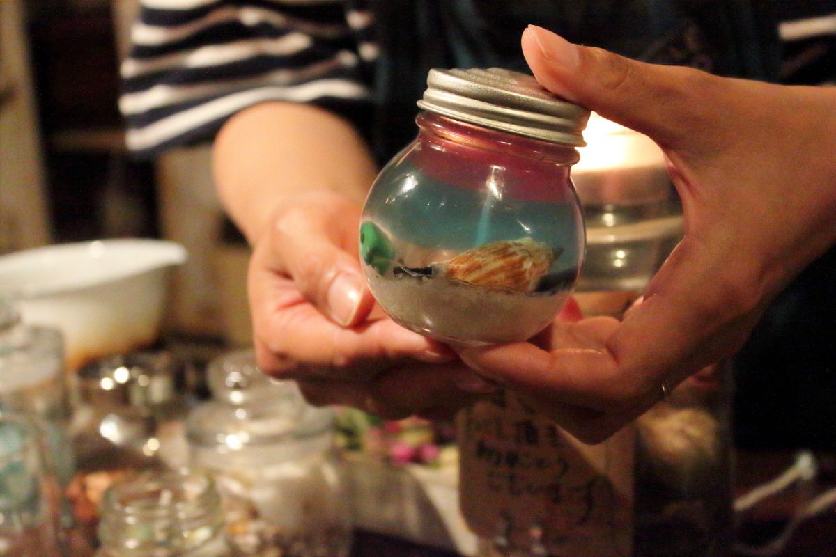 作ったキャンドルは、その日のうちに持ち帰り可能。おうちでインテリアにしたくなるほどの完成度!本当に小さな海のような仕上がりになりました。