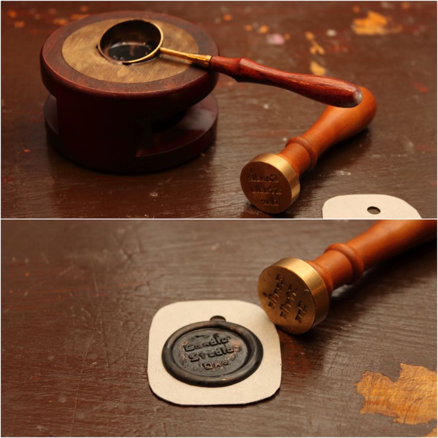 こちらのコースでは、シーリングワックスを使ってオリジナルのタグも作成します。ワックスを溶かしスタンプを置きます。冷めたら、スタンプを外して完成!
