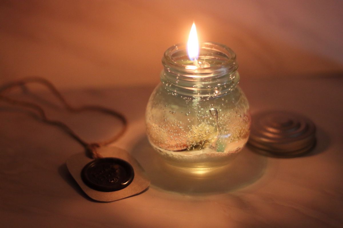 灯していくうちに、気泡が抜けてだんだんクリアになっていくのもこのキャンドルの魅力。自分で作って自分で育てる、世界にひとつだけのキャンドルにうっとり!