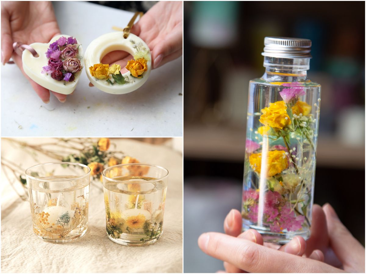 そのほかにも、ドライフラワーの入ったボタニカルキャンドルや香りも楽しめるアロマ&ボタニカルキャンドルなどの体験レッスンがあります。