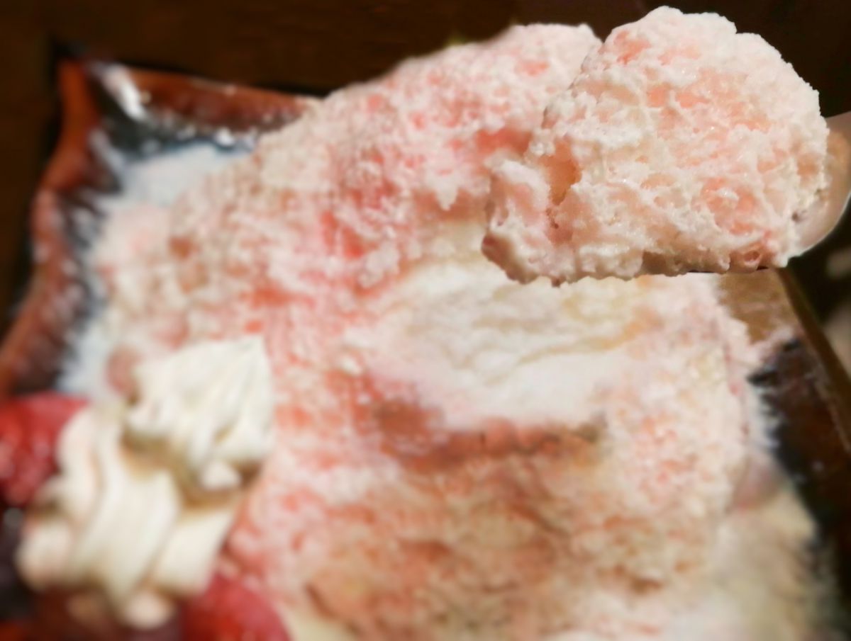 どんどん食べ進めても、頭がキーン!となる心配もありません。時間が経つと溶けて、ふわふわじゃなくなるのでは?という心配もご無用。意外と溶けにくいので、最後までふわふわさが続く、まさに夢のようなかき氷なんです。