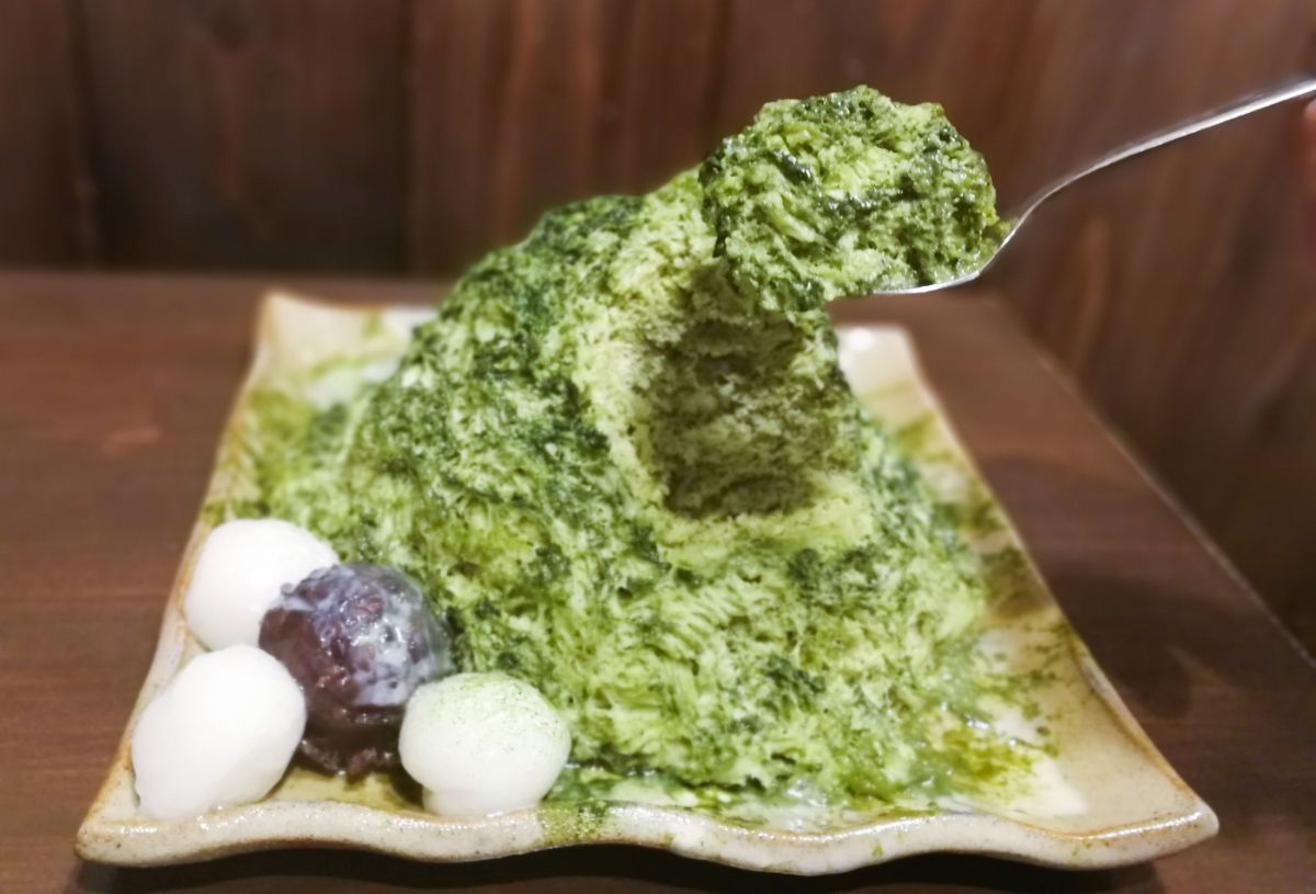 抹茶ふわリッチをベースにした「宇治金時」も人気のメニュー。あずき、白玉、練乳、抹茶パウダーがトッピングされています。