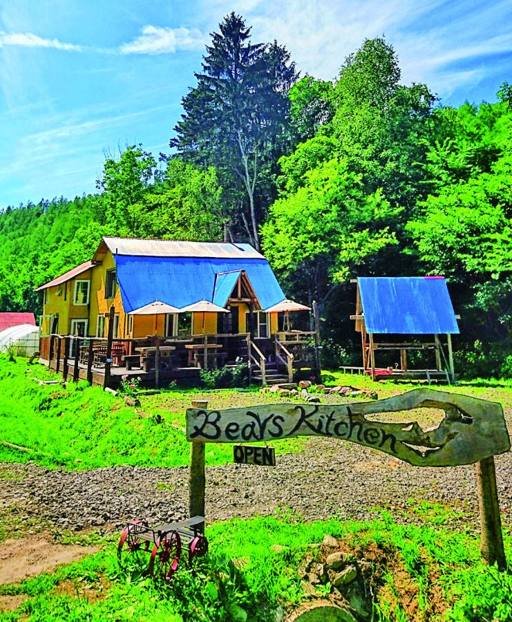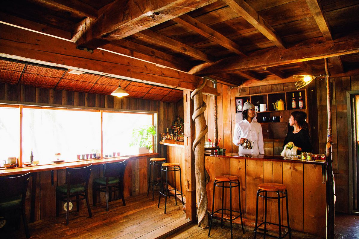 廃材を集めてオーナー夫婦が、2年の月日をかけて建てたレストラン「Bears Kitchen」。近隣農家から直接仕入れた有機・無農薬栽培の野菜や自家栽培の野菜をふんだんに使用したヘルシーな食事を味わえます。