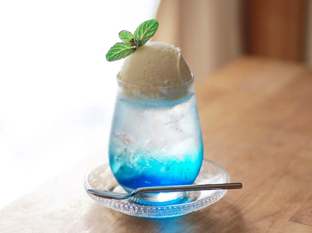 tsunekawaさんがクリームソーダのレシピを作るときにイメージしているのは、「旅先の光景や四季の景色などをヒントに、グラスの中に小さな世界を作り出す」ことだそう。
