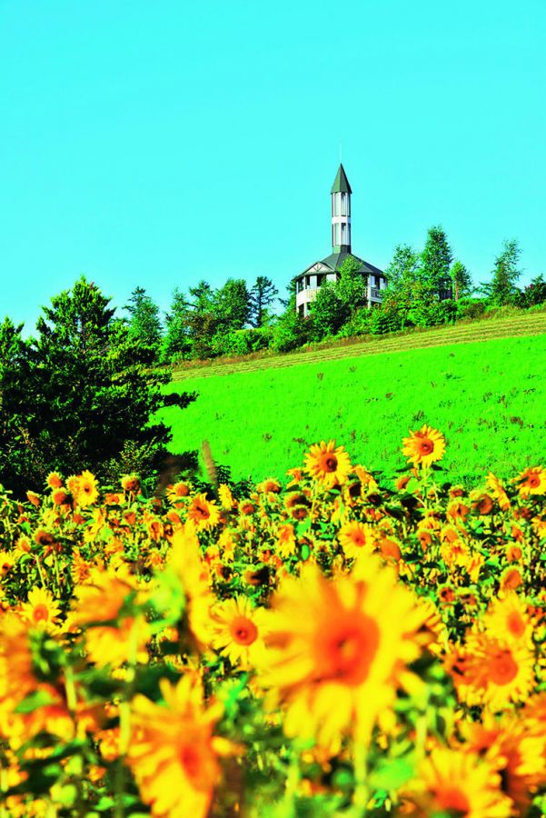 じゃがいもやとうもろこし、小麦などの畑が広がる、北海道らしい風景が望める「新栄の丘展望台公園」。昼間はのどかな雰囲気が漂い、夕暮れ時には丘一面が紅く染まる一味違った景色に包まれます。売店やトイレも完備されているので、ドライブ中のひと休みにもおすすめ!