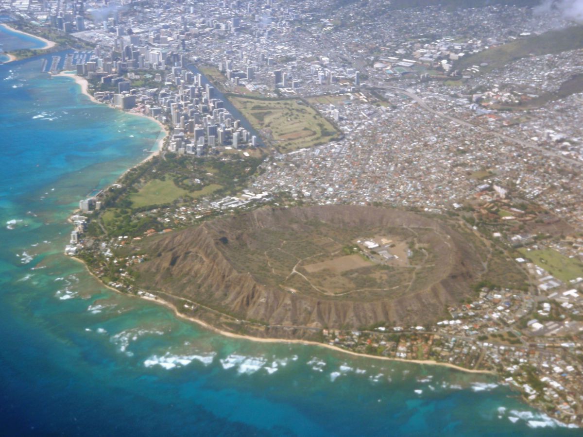 約30万年前に起こった噴火によって形成された、ハワイの東側にある山です。標高は232m。その噴火口の形からレアヒ(マグマのおでこ)ともよばれ、1968年に国立自然史跡に指定されています。1908年に軍事的な防衛設備のひとつとして利用されていたため、今も頂上付近に監視台があるなど、その歴史の名残を見ることができます。
