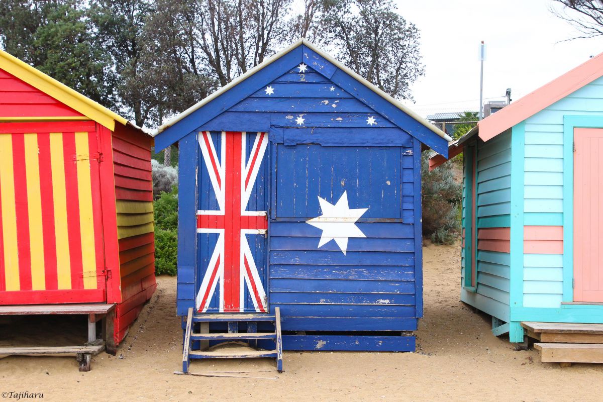 さまざまなアートが描かれたビーチハウスがありますが、ひとつだけオーストラリア国旗がデザインされた小屋があるので、ここを訪れる際は探してみてくださいね。