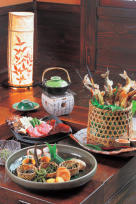 夕食は地産地消をコンセプトに最高ランクの飛騨牛や川魚などがいただけます。