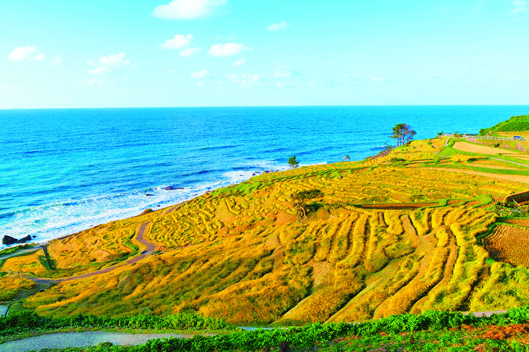 石川県輪島市にある白米千枚田では、田んぼの間には遊歩道があり、千枚田の中を自由に散策できます。田んぼの緑と日本海の青のコントラストがまぶしいフォトジェニックな景観が見られるのは8月ごろまで。稲とおひさまの匂いを、い~っぱい吸い込みましょう。