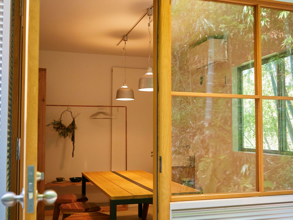 こちらが“食=カフェ”、“住=ワークショップ”として使われている空間。窓の外に広がる竹林を眺めながら、甘糀を使ったドリンクやスイーツがいただけます。