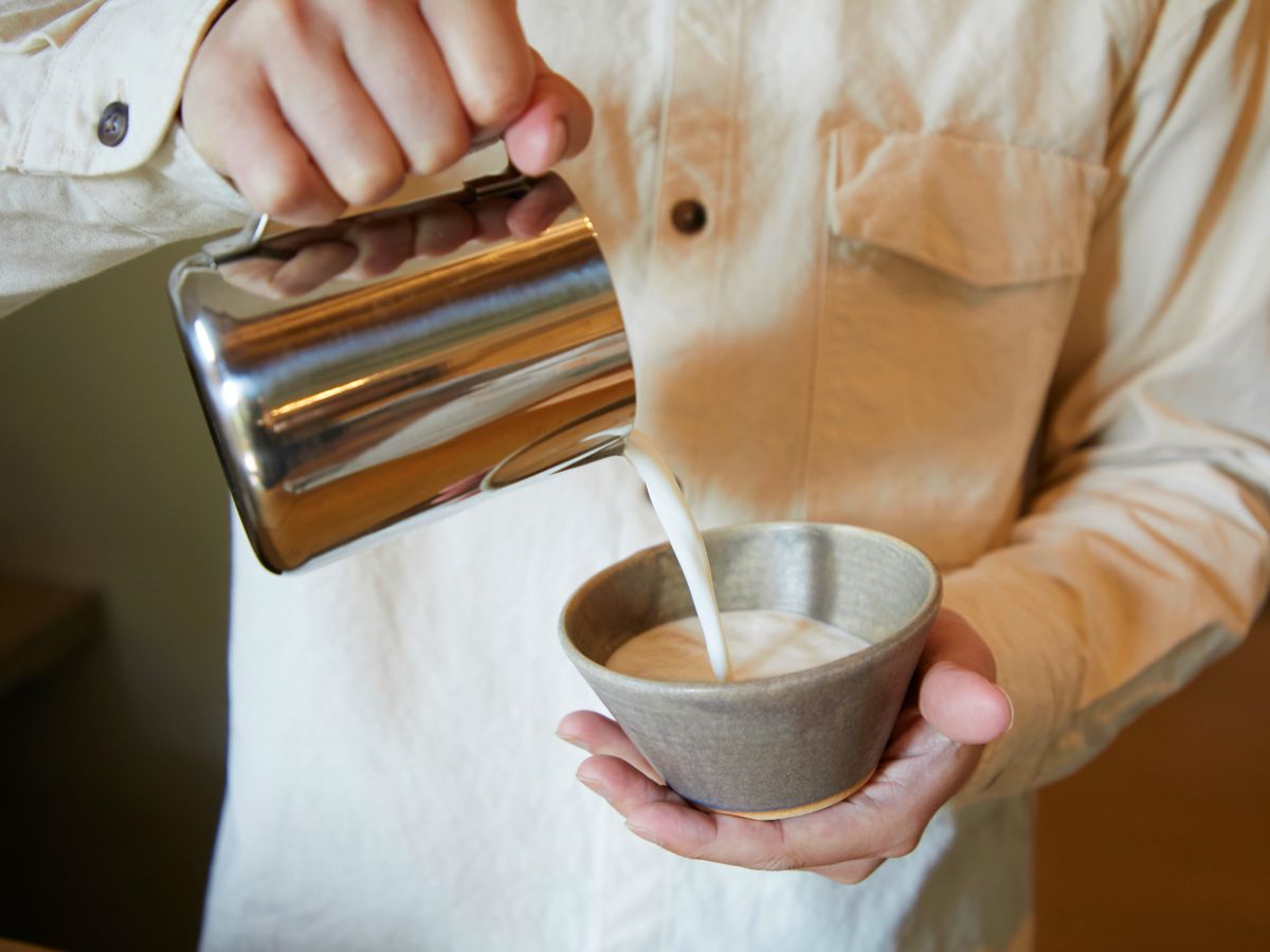 竹林に包まれたカフェで自慢の「甘糀ラテ」を