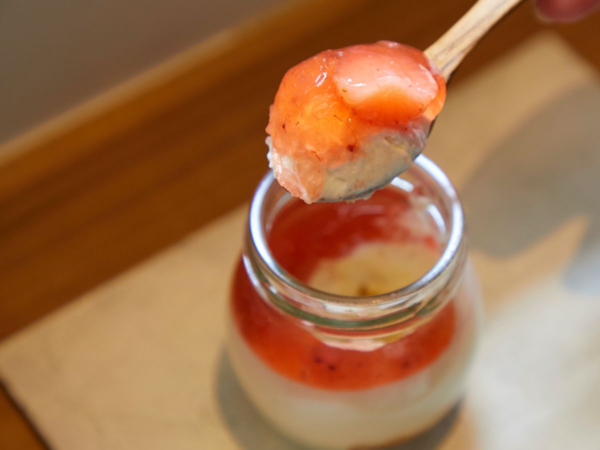 食べ方のポイントは、一番下のスポンジまで一気にすくって食べること。オーナー曰く「味や食感のバランスも意識して素材を配置しているので、口に入れた瞬間の一体感も楽しんでみてください」とのことです!