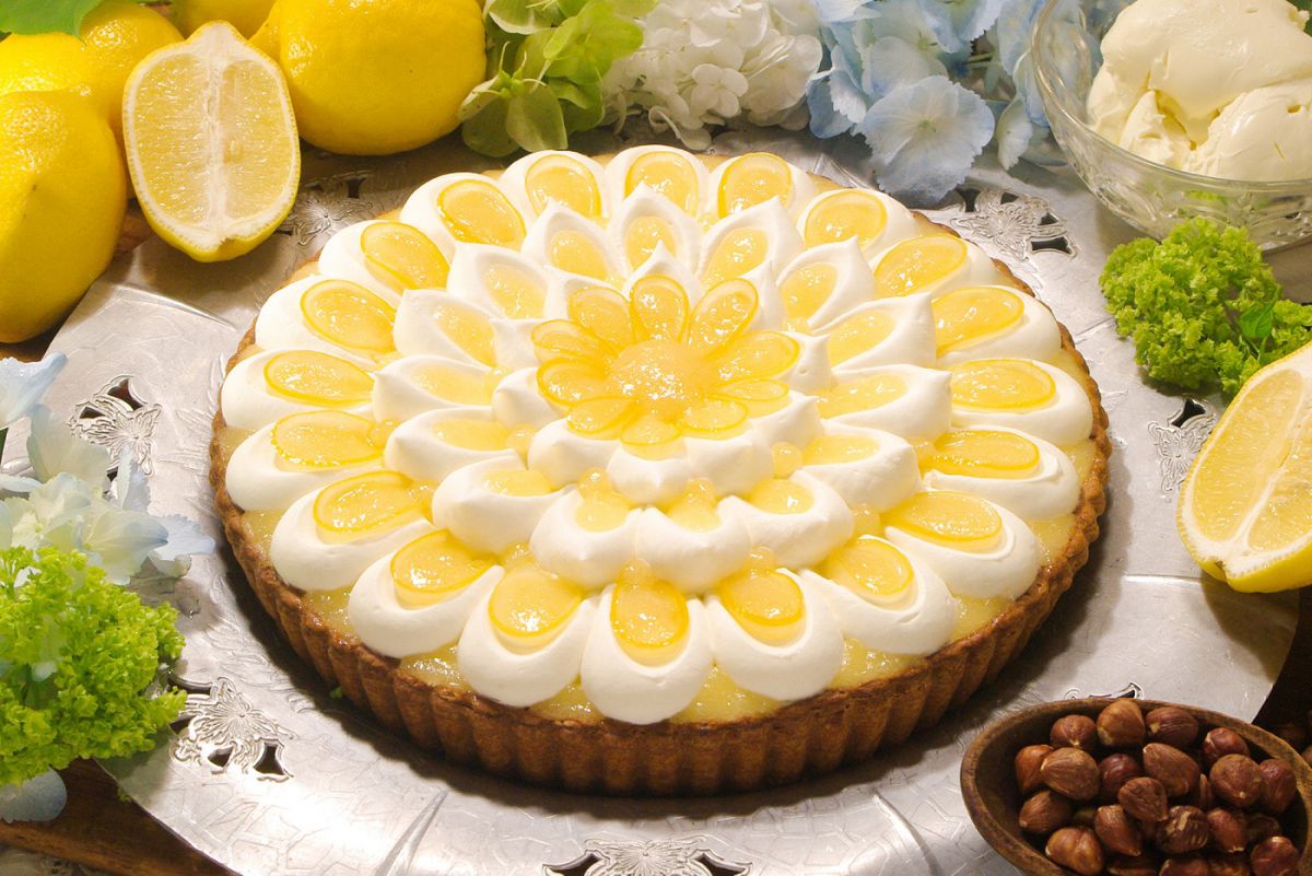 「レモンのティラミス」piece722円、whole(25cm)6912円は、レモンの酸味とまろやかなマスカルポーネクリーム、相性ぴったりのふたつを合わせたオリジナルティラミスのタルト。マスカルポーネクリームのなめらかな味わいの中に、レモンのさわやかな香り、タルトに敷いたヘーゼルナッツクリームの香ばしい香りが広がります。