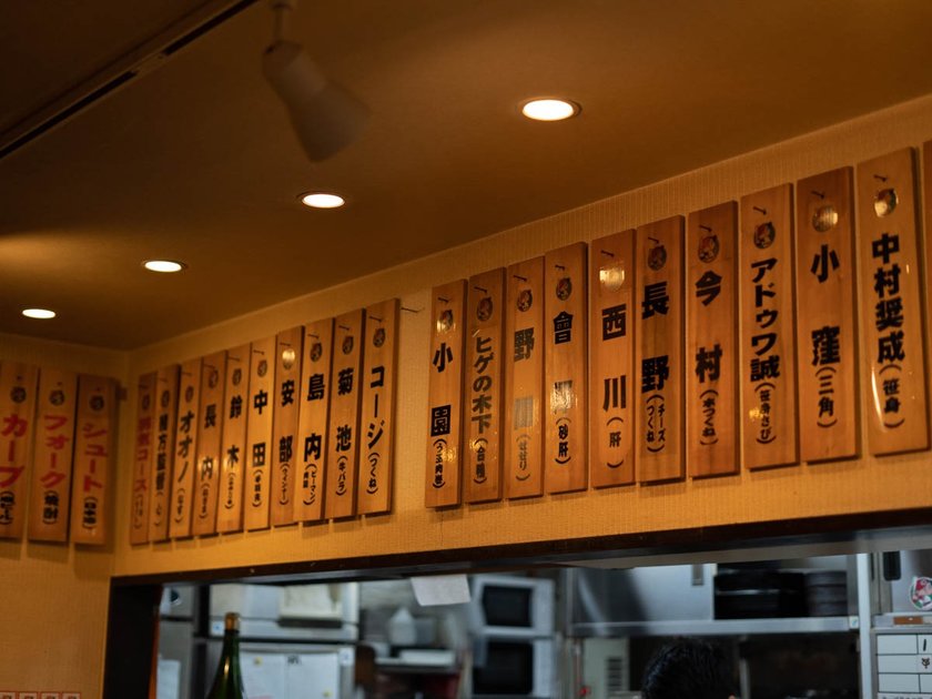 「カープ鳥」の最大の特徴はメニューの名前。なんと、串のメニューがカープの選手名になっているんです!毎年各店舗の店長さんが集まって、ドラフト会議のように、それぞれのメニューを誰の名前にするか考えているそう。