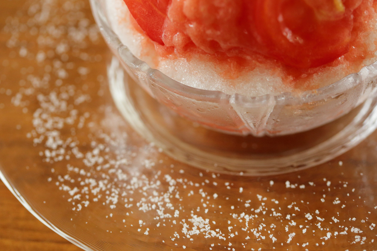 赤いかき氷といえばイチゴですが、サブヒロではトマトもラインナップ。「トマトのかき氷」(1500円)なんて奇抜に思えますが、食べてみると氷との相性がいいんです。トマトはビタミンやカリウムが豊富なので、暑さに疲れた体を癒してくれそう。