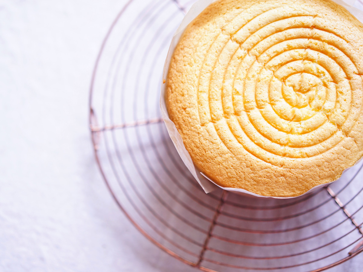 スポンジは1cmの厚さにスライスします。このうち2枚はメロンの形に合わせて12㎝ほどの円形に型抜きしておきます。