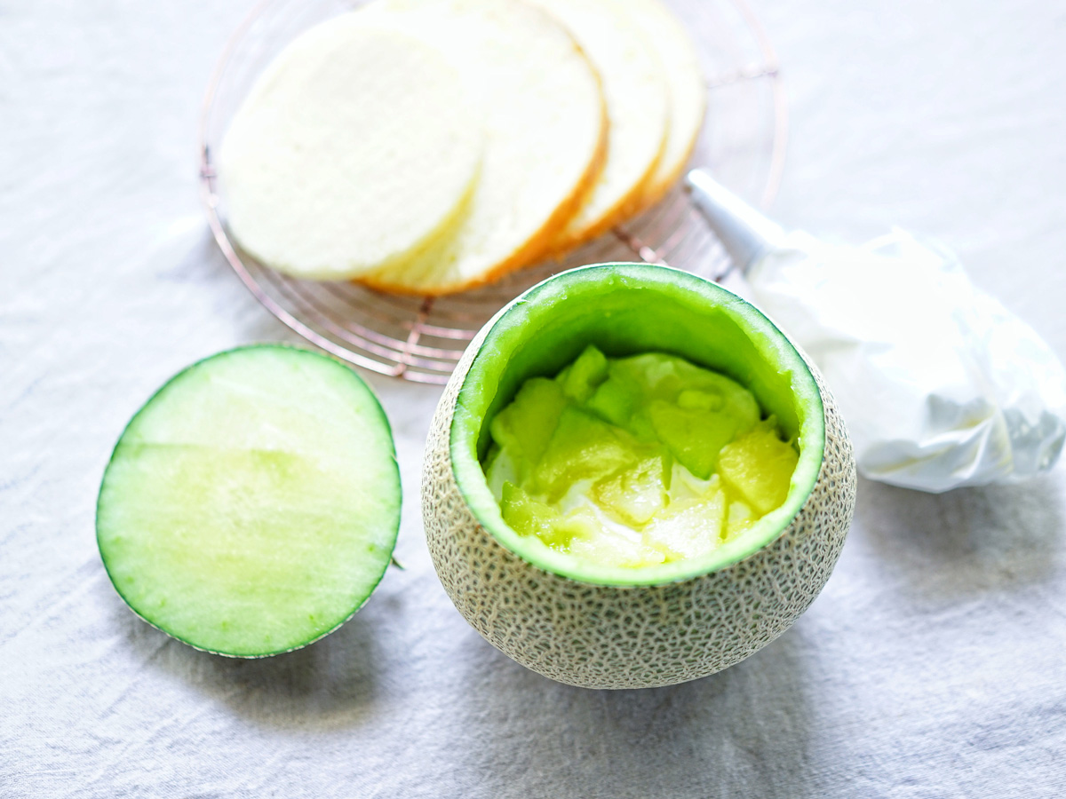 ポイントは、コンデンスミルク入りのクリーム。さわやかな甘さのメロンにぴったりのミルキーなクリーム、ぜひ試していただきたいです。
