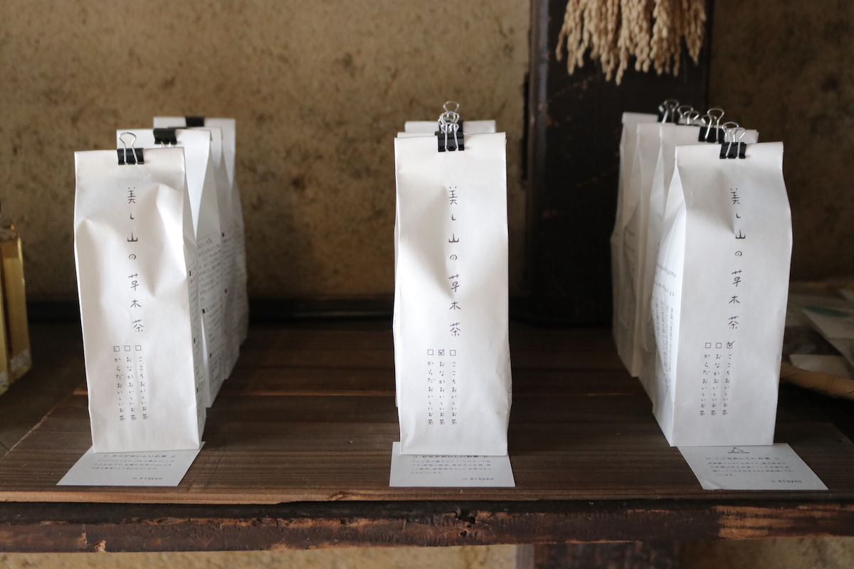 1階ではショップセレクトの体にやさしいお茶や、お店で実際に使用している器やカトラリーなどの販売も。 実用的なものだけでなくアート作品もさりげなく並んでいて、眺めているだけで楽しい。