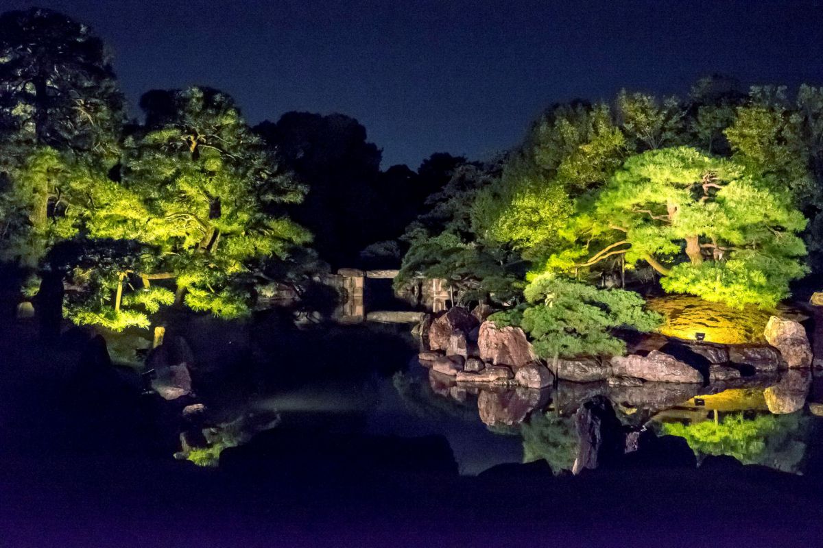 「妖怪たちの百鬼夜行」をテーマにした国宝・二之丸御殿(大広間)へのプロジェクションマッピングや、特別名勝・二之丸庭園をはじめとした城内各所のライトアップが見どころ。箏の生演奏など七夕の風情を感じるコンテンツも多数企画されています。