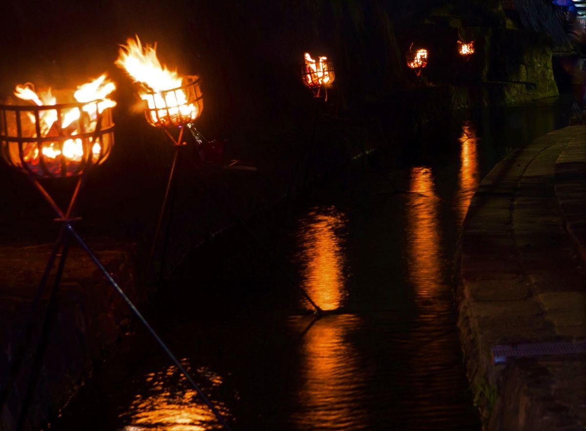 堀川通の横を流れる堀川の川べりに、かがり火が焚かれ、特設ステージでは舞妓さんの踊も披露されます。