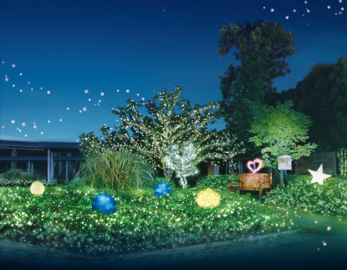 イルミネーションや行灯で、夜の公園を美しくライトアップ。期間中の土・日曜と最終日の12日には、キッチンカーによるグルメエリアの設置やミニ縁日、短冊に願い事を書く七夕飾りなども実施されます。