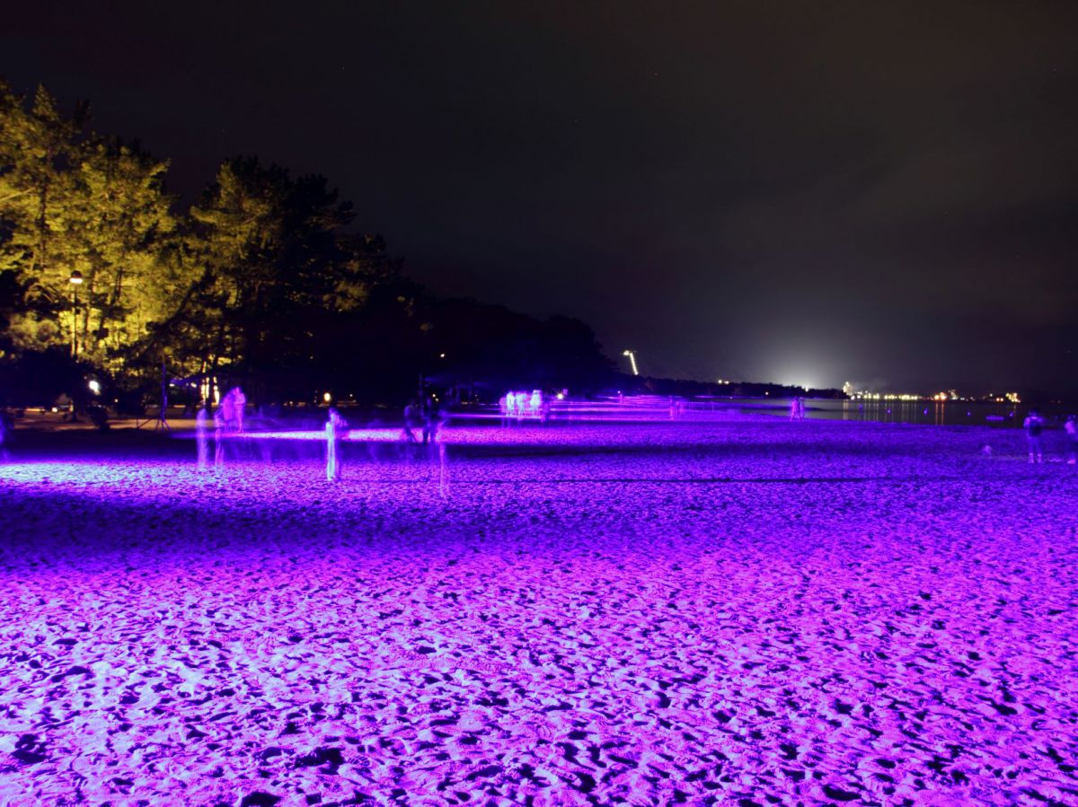 天橋立南側にある文珠エリアで行われる夏のライトアップイベント。期間中、天橋立の砂浜が幻想的な光でライトアップ。時とともに色彩が変化する神秘的な光の空間が楽しめます。