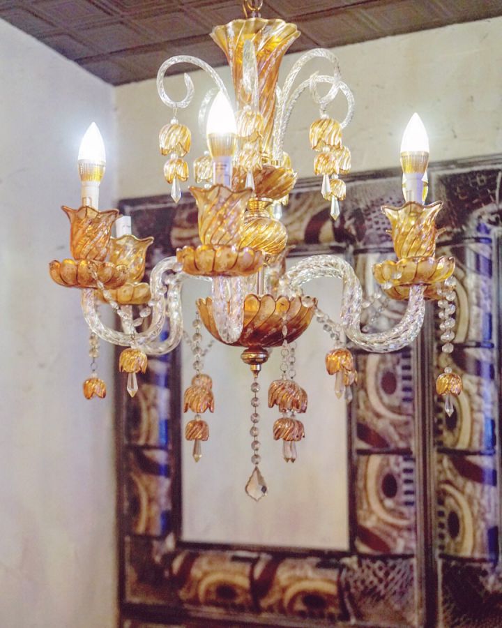 店内はシャンデリアやミラー、額縁などおしゃれなデザインのアクセントが多いので、色には華があっても、デザインはシンプルなものを合わせるのがおすすめです。