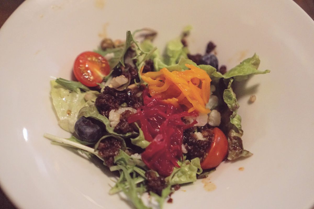 順番が前後しますが、前菜の後に出てくるのが「旬熟成オリジナルパワーサラダ」。自家製酵素ドレッシング3種で味わいます。