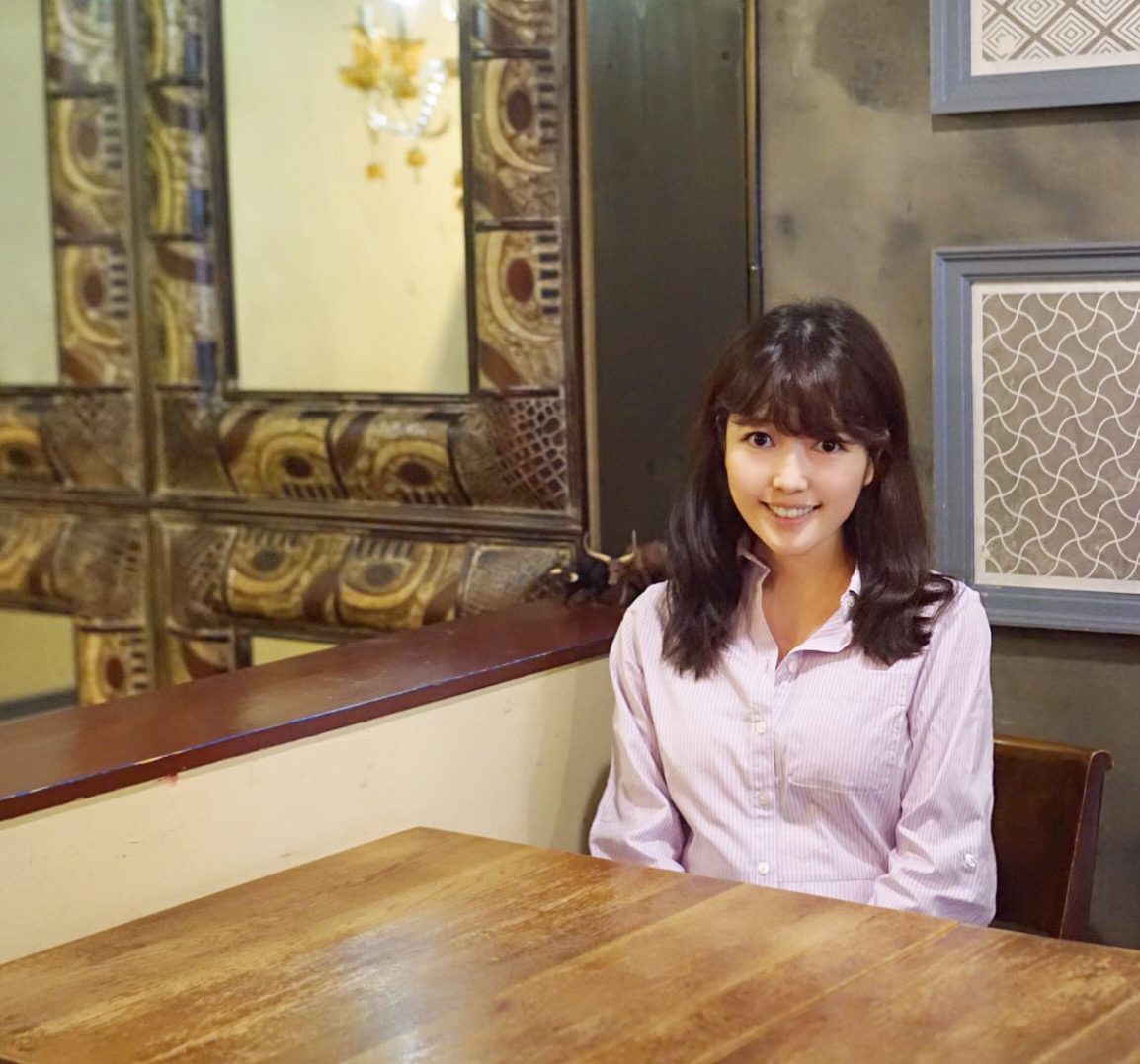内装がシックなカラーなので、色味が華やかなパープルのシャツワンピースで伺いました。