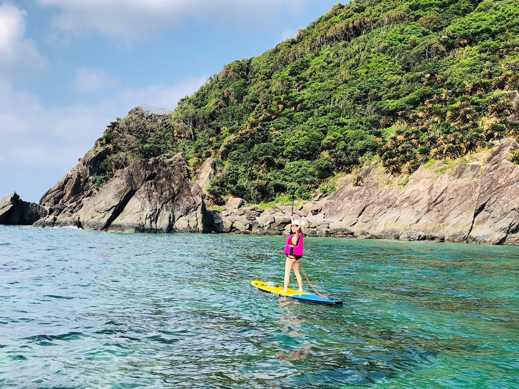 奄美大島の自然を満喫するうえで力になってくれるのが、アマニコの体験メニューの数々。例えば、SUP体験では初心者でも笑顔が素敵なガイドさんが優しく教えてくれるから安心です!奄美大島の自然を知り尽くしているからこそ、歩いて行けないヒミツのビーチに行くこともできるかも。
