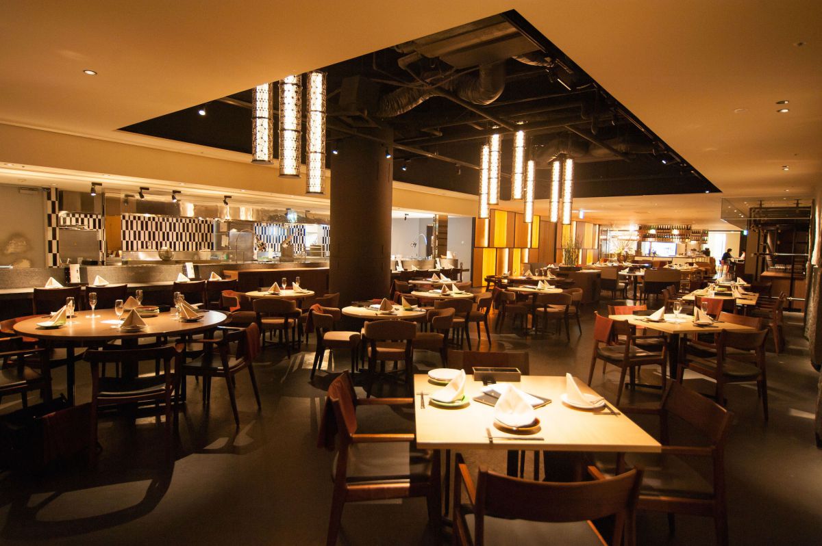 品川プリンスホテルのメインタワー1階にある「リュクス ダイニング ハプナ」は、390もの総席数を誇る、大規模なビュッフェレストラン。団体での利用も可能な「センターコート」、落ち着いた雰囲気が漂う「アッパーラウンジ」など、いくつかのコーナーが設けられていることも特徴です。