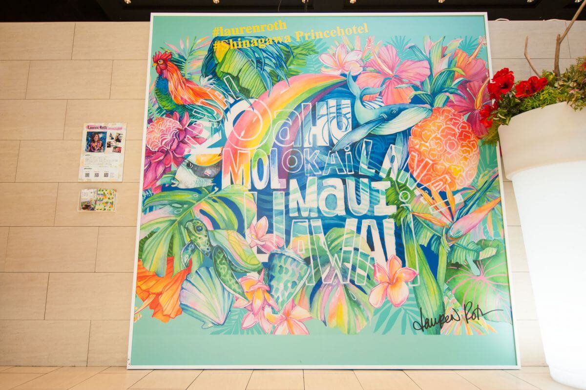 8月末まで、オアフ島在住のアーティスト&グラフィックデザイナー、ローレン・ロスさんとのコラボレーションで、期間中は同氏の作品を鑑賞することができます。また、ランチとディナーメニューの一部が、おしゃれなハワイ風のメニューに。ハワイならではのリラックスムードを存分に感じて。