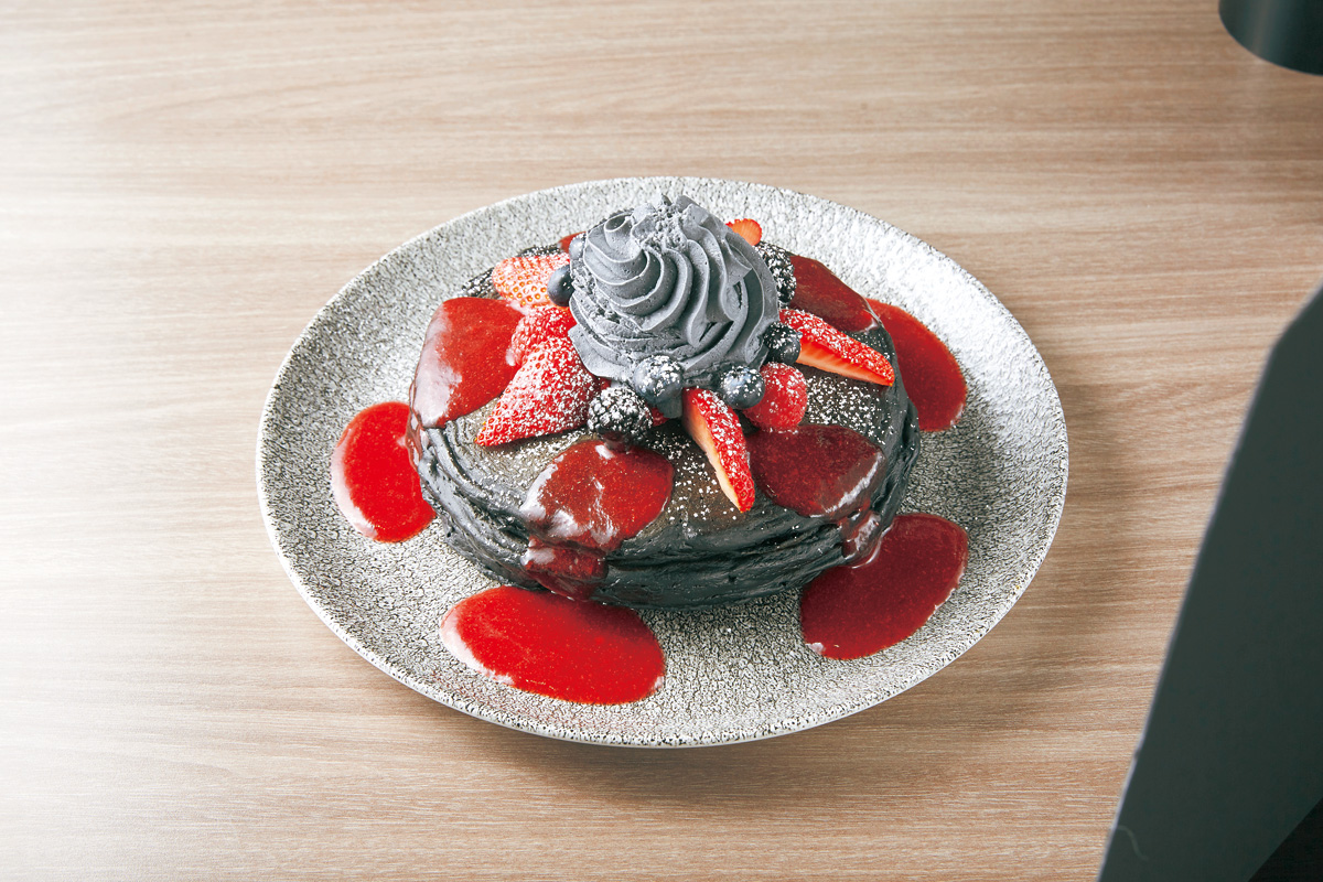 ブラック&レッドのモダンスタイルなパンケーキ「バサルト」